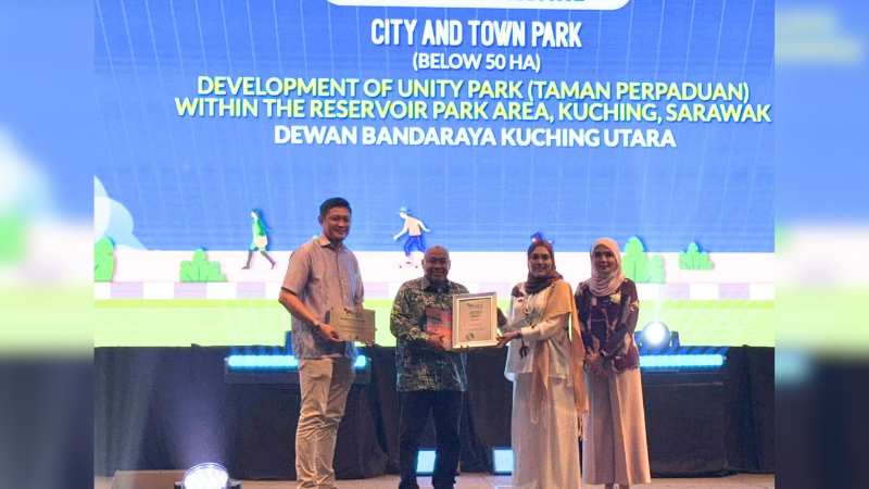 KUCHING, 13 Sept: Dewan Bandaraya Kuching Utara (DBKU) mencatat pencapaian membanggakan apabila dinobatkan sebagai Pemenang Emerald (Tempat Ketiga) bagi Kategori 2: Taman Bandar dan Bandaraya (Subkategori 2A: Bawah 50 Hektar) melalui Projek Pembangunan Taman Perpaduan di kawasan Reservoir Park dalam Anugerah MyPLACE 2025 anjuran Institut Perancang Malaysia (MIP).